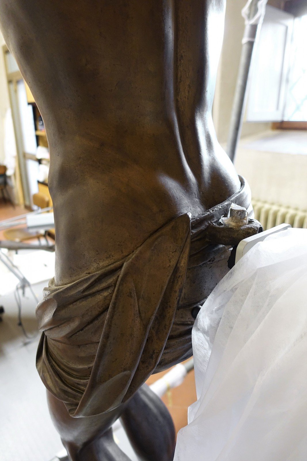 “Like the horse in Piazza della Signoria – Salvioli underlines – this Christ is a single piece of bronze, and it’s very, very thin. Giambologna was the only artist of his time able to produce such a light and refined monumental piece”. And effectively, considering that it is almost a full-scale human body, the Christ weights less than 150 kilograms only. Only the Greeks, before Giambologna, were able to reach such achievements in bronze fusion. “During the Medieval age, or the Renaissance, a sculpture of this kind would have been made with four or five different pieces at least – Salvioli explains. While in this case only the crown of thorns and some elements of the hands which cover passages needed to access to the inside of the sculpture were added after the fusion”.