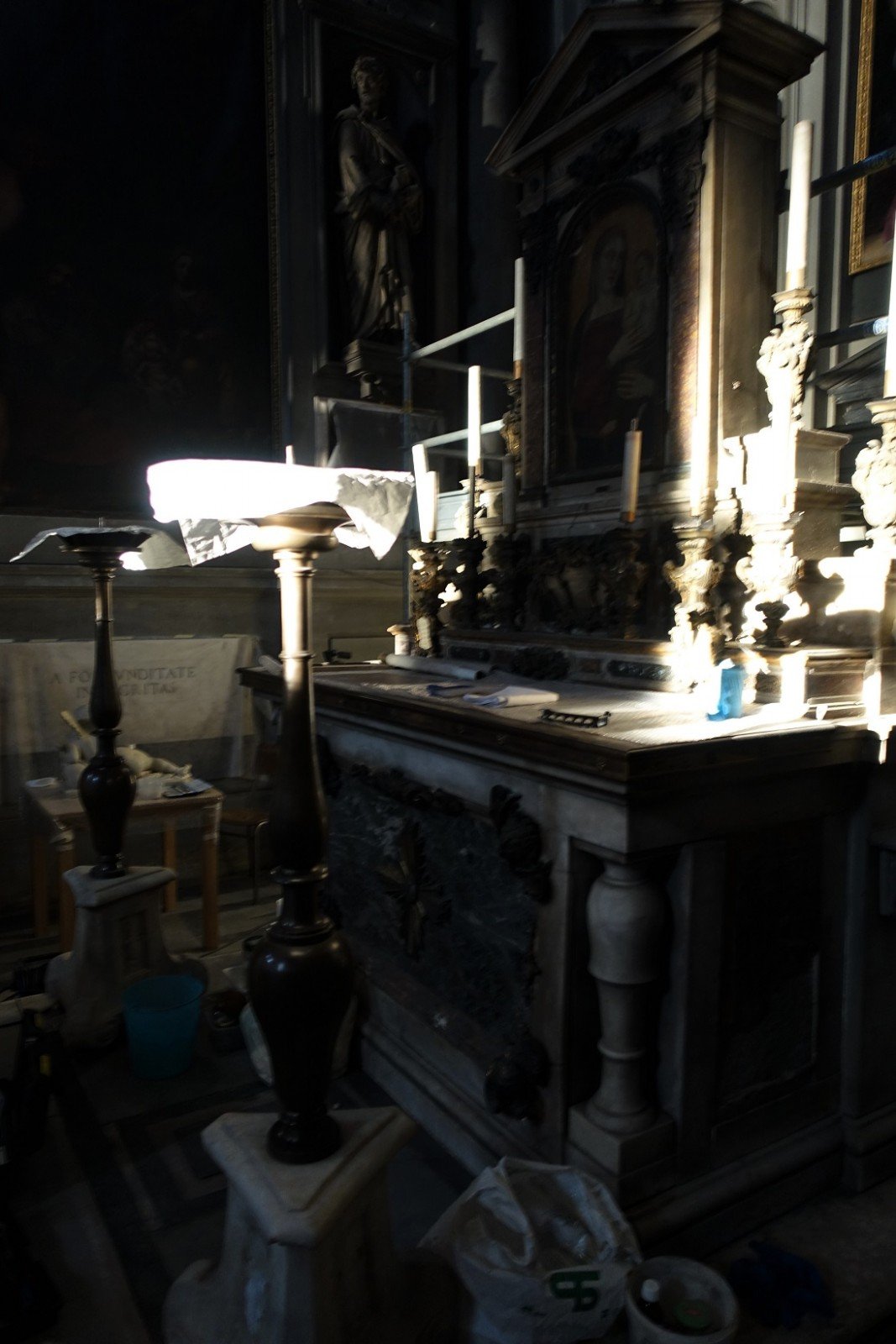 The piece, cleaned and studied thanks to the money provided by Friends of Florence, was secured at the cross by two hooks placed at the bottom of the body and two hinges bearing big curved nails. The moorings at hands and feet were needed just to keep the structure steady. Since the chapel it was made for is located at the centre of the apse, the bronze crucifixion was in effect the most important one in the church. The sculpture will be reinstalled in the position wished by Gimbologna as soon as the restoration of the chapel is ready. But since all the money needed to complete the work has not been found yet, nobody at the moment can say exactly when this will happen…