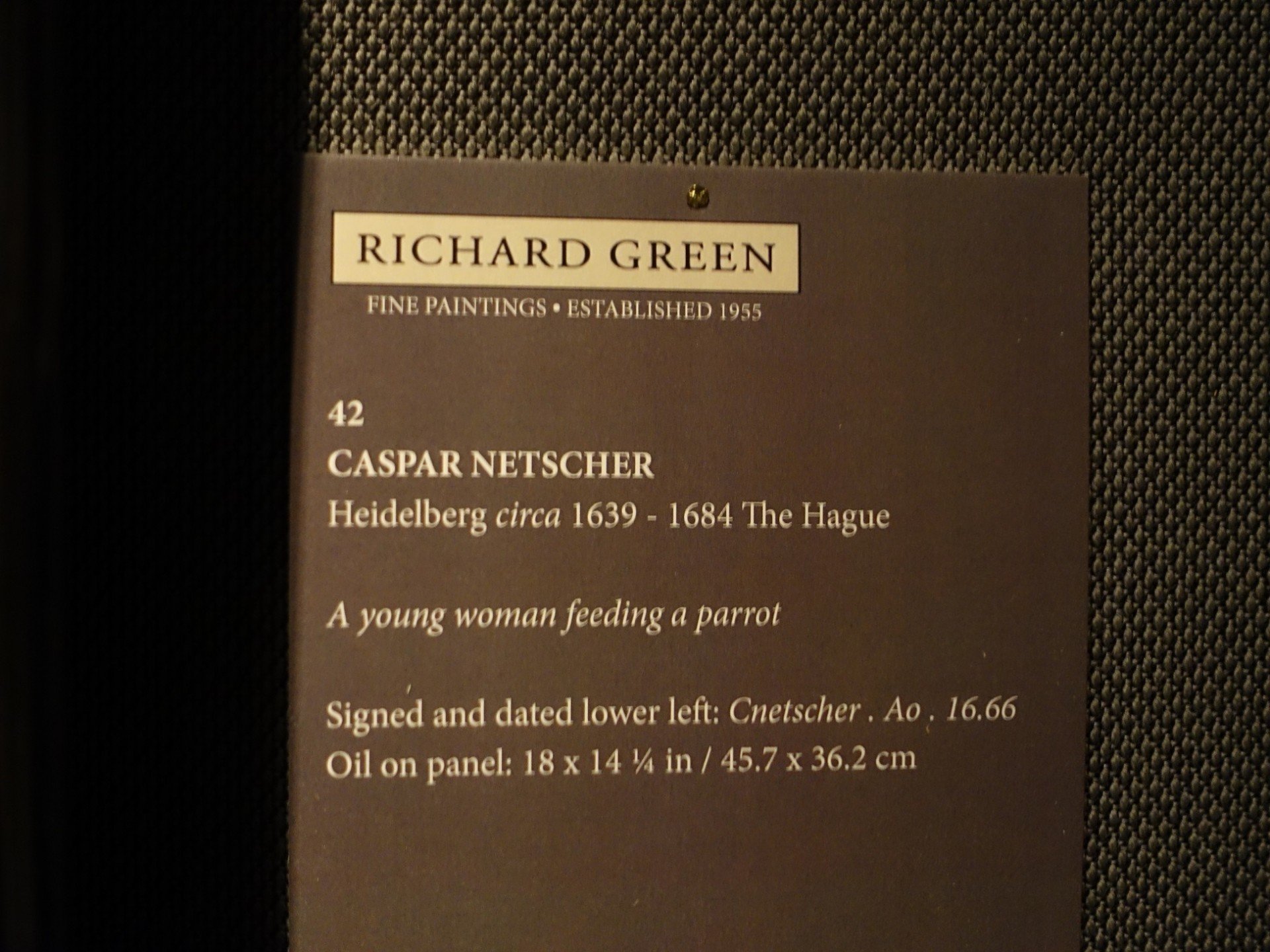 You need €5.5 million to buy the early Bernardo Bellotto presented by Richard Green, but the piece is extraordinary well preserved and lively. As lively as the delicate Young woman feeding the parrot painted by the virtuos Caspar Netscher, also on exhibition at the gallery. A second Bernardo Bellotto is on offer at Moretti Gallery, which this year is presenting just a single modern piece, a beige square by Alighiero Boetti. The trend of refreshing old masters with modern and contemporary art pieces apparently is not a trend any more, at least here at the Tefaf. Clients – and the big ones are museums, as our brief enquiry does prove – want masterpieces not aesthetics. In order to find them you need to focus your attention on relatively small areas and people.