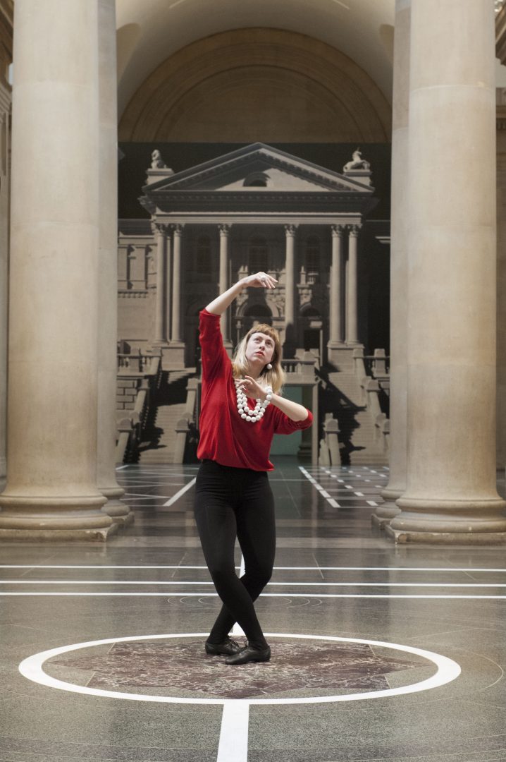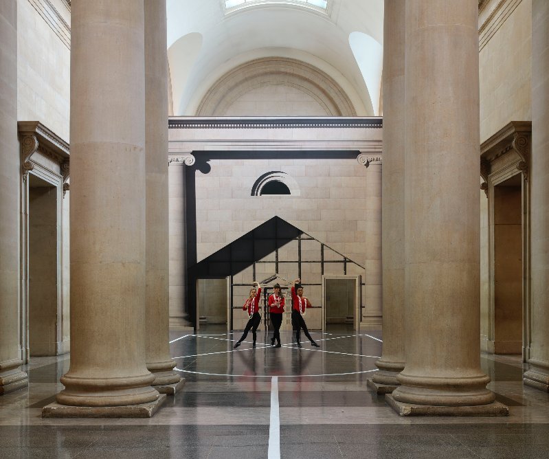 With generous sponsorship from Sotheby’s, Bronstein is employing a changing team of a dozen or more highly talented dancers (mostly classically trained) to embody this tradition-challenging presentation. The main action is performed by an ongoing set of three performers at a time that will occupy this space every day for six months from 11am-5pm. They will repeat a set of movements, with some soloing, or co-coordinating in duets or triplets, throughout this time period. There is some allowance for improvisation, but the structure of pre-determined movements is clearly evident. In the video interview on the Tate website, Bronstein describes ‘Historical Dances’ as a form of drawing: “Drawing is very, very immediate. I find that when I draw there’s a kind of direct route to an inner life. But, that said, choreographing… dancers also has the same quality.”