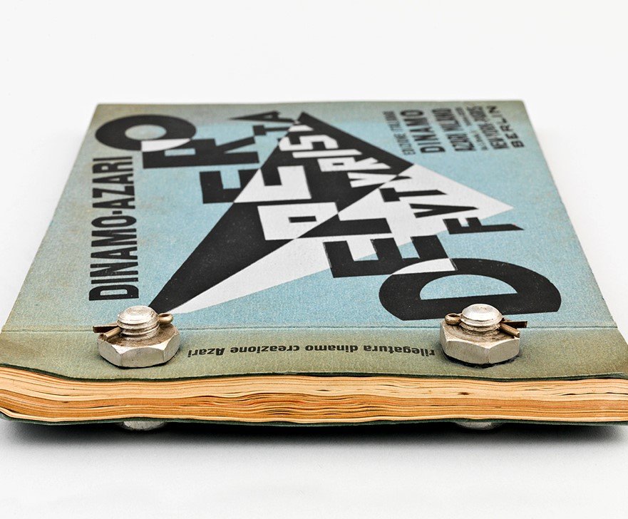 - Depero Futurista, Dinamo-Azari, Milano, Italy, 1927. Artist’s book bound with bollts, 32 x 24,2 cm. © Artists Rights Society (ARS) New York / SIAE Rome. Ph. Adam Reich.