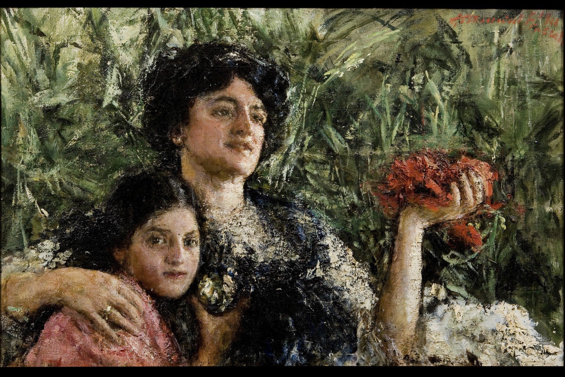 - Antonio Mancini, Portrait of Mrs. Pinelli with her daughter, 1911; Oil on canvas, 60×95 cm.