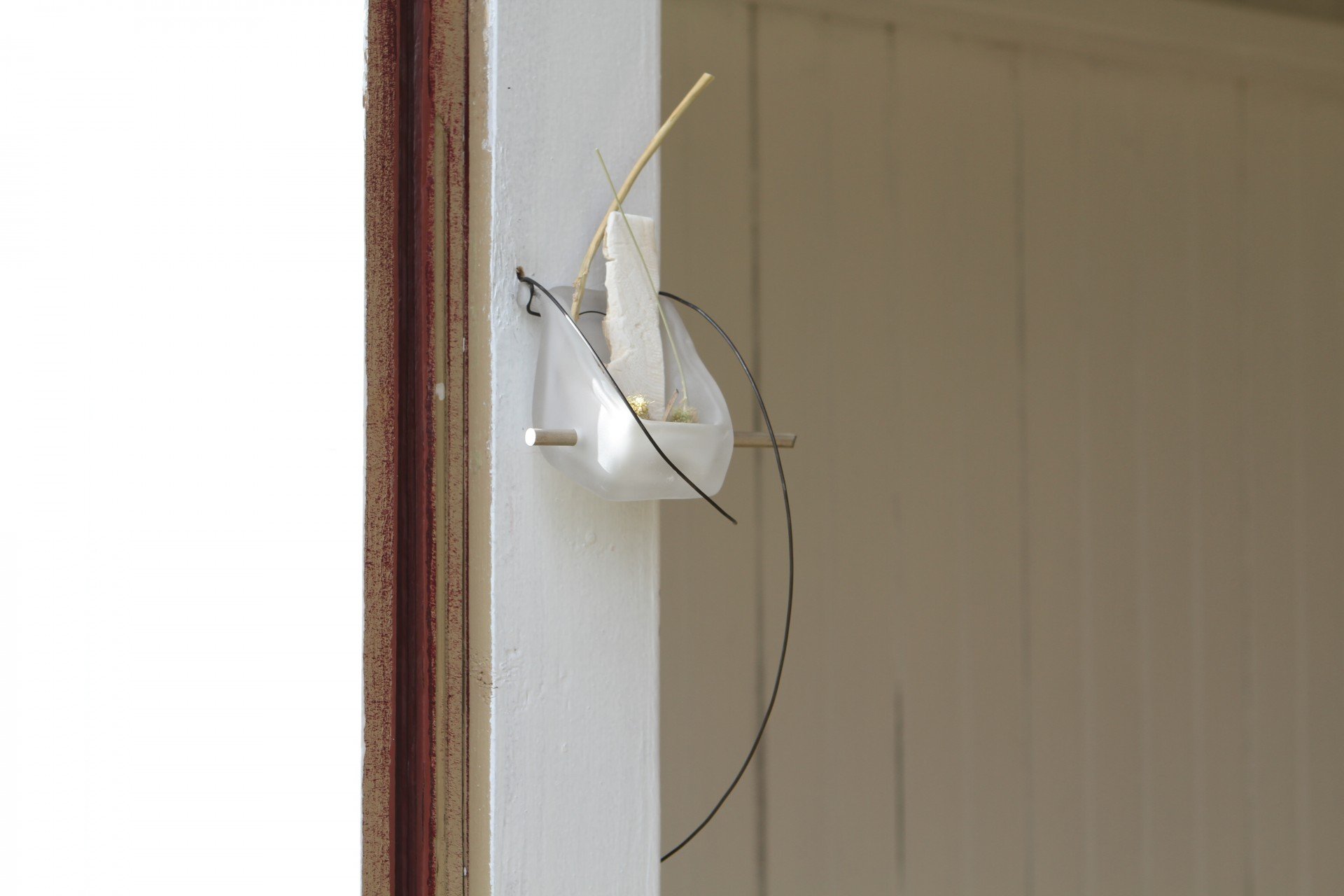 Minimalism used to infuriate people. Now that we got used to it, it’s lost a bit of its kick but there are still artists out there ready to surprise us. K.r.m. Mooney (b.1990) are one of them. They live and work in Oklaoma but this apparently remote location hasn’t prevent their work to get noticed by the art world. With upcoming solo shows at San Francisco Museum of Modern Art and Kunstverein Braunschweig in 2017, the young artist, who have previously exhibited at The Wattis Institute for Contemporary Art, Hester and White Flag Projects, is definetely one to watch closer. Watch closer. Yes, because K.r.m. Mooney work doesn’t scream for attention but demands it, opening up to new level of investigation. Flora and handmade materials melt together in tiny, silent and exquisitely crafted sculptures made of silver-plated steel, spray millet, cuttlebone, steel wire, cast lavender, fluvial aquatic heater, copper, just to mention few components of the artist’s own alchemy. They stand on the floor, someone should be careful not to step on them, or cling above the eyesight, ready to be discovered. They exists in the space between sculpture, installation, poetry, assemblage and, willing or not, politics, in their anti-Trump reclusive nature.