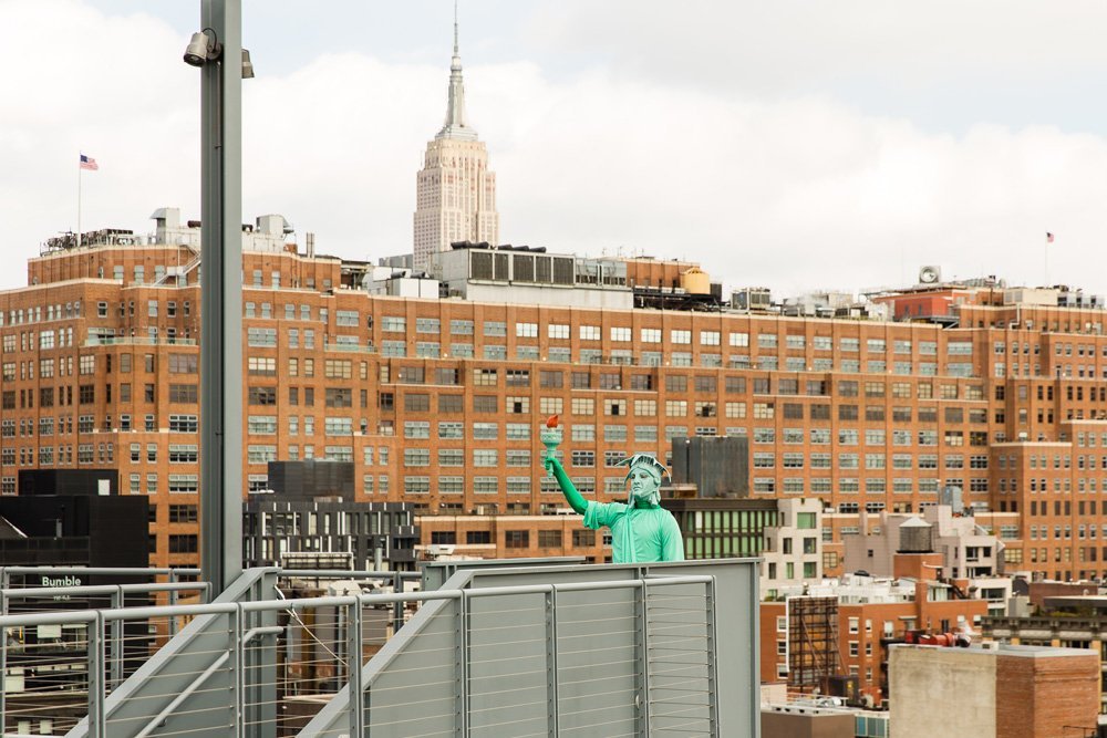 Since most of the art in the Biennial was conceived prior to the presidential election, “the show already feels nostalgic,” says New Yorker art critic Peter Schjeldahl. At least one work, however, a performance piece by Puppies Puppies, seems to hit the nail on the Trump Era head. The group’s work Liberté (Liberty) presents a performer dressed as the Statue of Liberty on the eighth floor balcony, the highest point in the museum, where Liberty is left out in the cold, with a drooping crown, persevering to prevail.