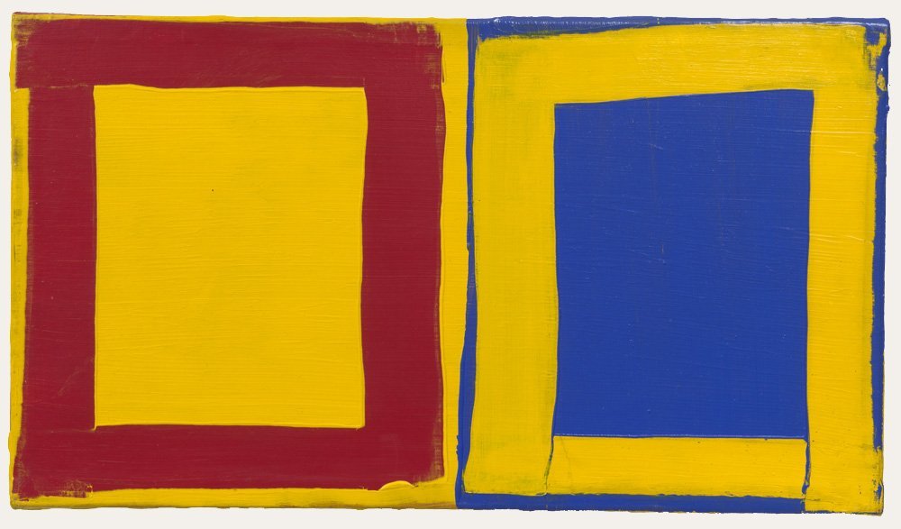 - Mary Heilmann, Little Three for Two: Red, Yellow, Blue, 1976. Acrylic on canvas, 13.5 x 24 in/34 x 61 cm. © Mary Heilmann. Photo: Thomas Müller. Collection: The Museum of Modern Art. Courtesy of the artist, 303 Gallery, and Hauser & Wirth.