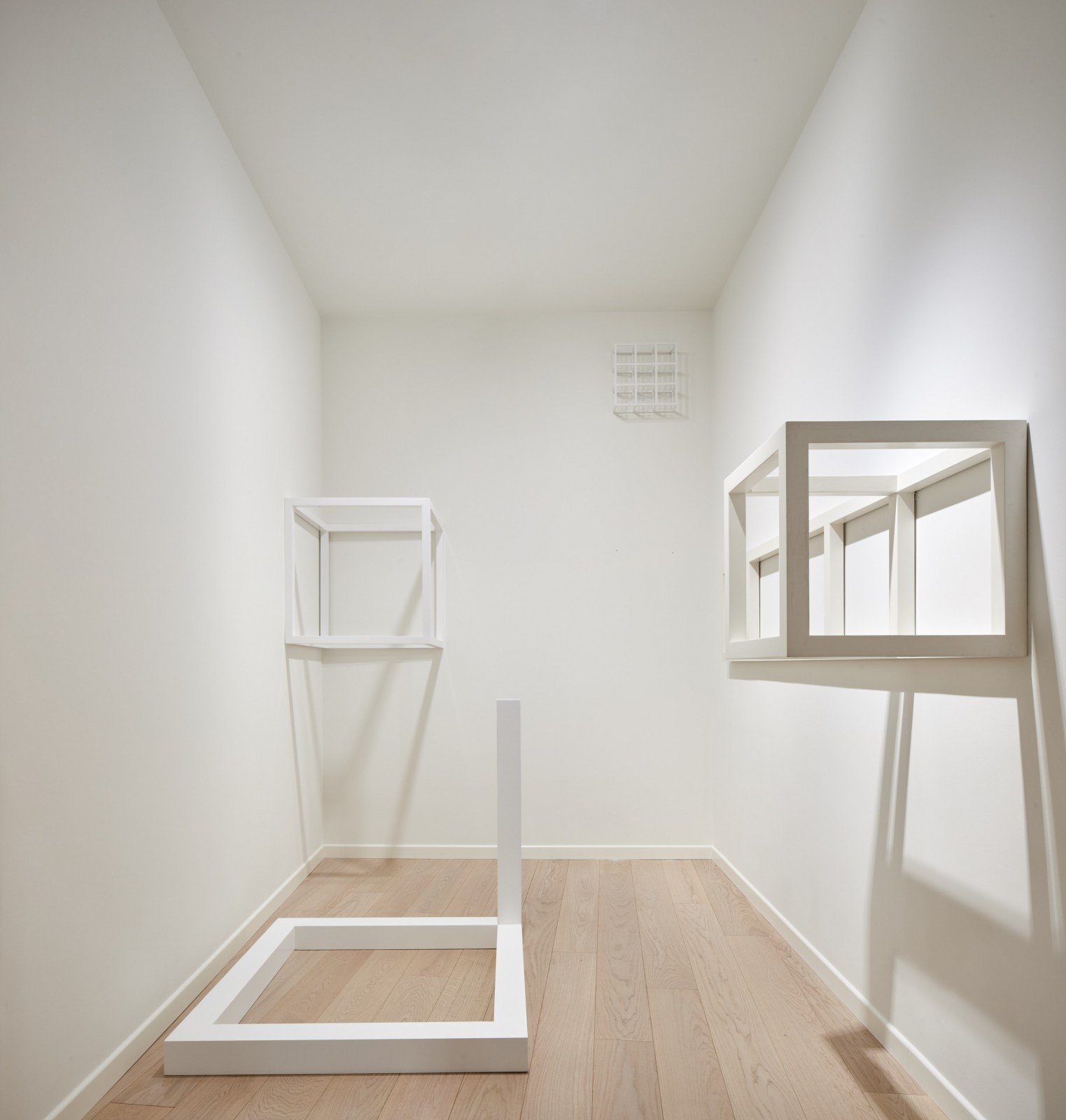 - Sol LeWitt, Modular Wall Piece with Cube, 1965, remade 1977 Painted wood 53,5 x 244 x 53,5 cm Courtesy LeWitt Collection, Chester, CT | Incomplete Open Cube 5/1, 1974. Baked enamel on aluminum 106,68 x 106,68 x 106,68 cm Courtesy Estate of Sol LeWitt e | and Paula Cooper Gallery, New York | Open Cube / Corner Piece, 1965. Baked enamel on aluminum, 74,93 x 74,93 x 74,93 cm. Courtesy Friedrich Christian Flick Collection im Hamburger Bahnhof, Berlin. | Modular Wall Structure, 1965 ca. Painted wood 37,1 x 36,8 x 13,3 cm. Courtesy Estate of Sol LeWitt e Paula Cooper Gallery, New York.