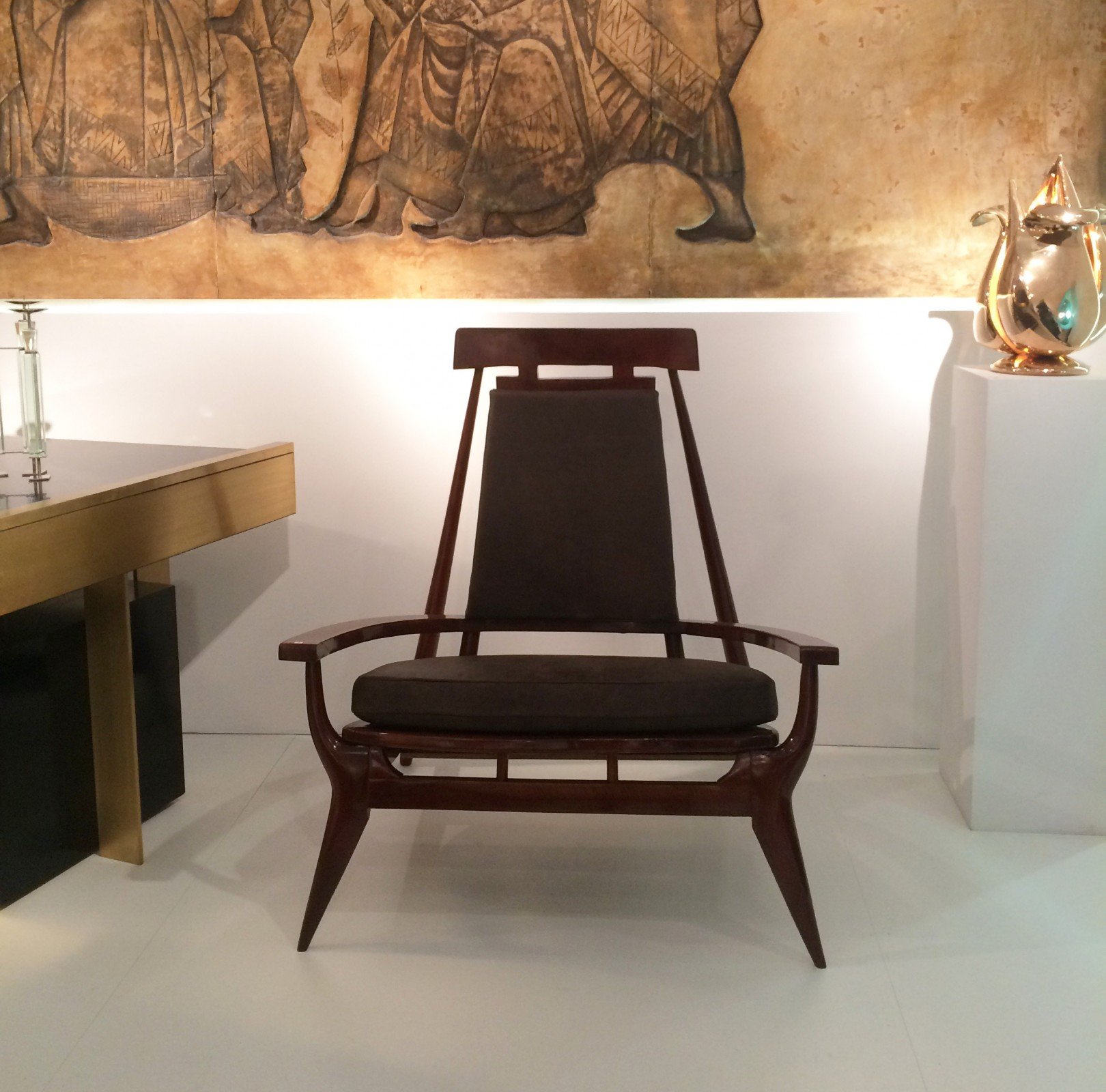 Vervoordt’s booth was definitely one of our picks. A fantastic bookcase from the 1970s by the father of Brazilian furniture Sergio Rodrigues priced around 160k euros occupied the entire back wall. Its moving leather panels covering the shelves stood in great harmony with the archeological pieces, which are the speciality of the dealer from Antwerp. Among them, we were particularly impressed by a contemporary-looking eye stele from South Arabia, which was used as a wall ornament for funeral ceremonies. At the time of our visit, the stele (priced at 70k euros) was on hold for an unnamed collector.