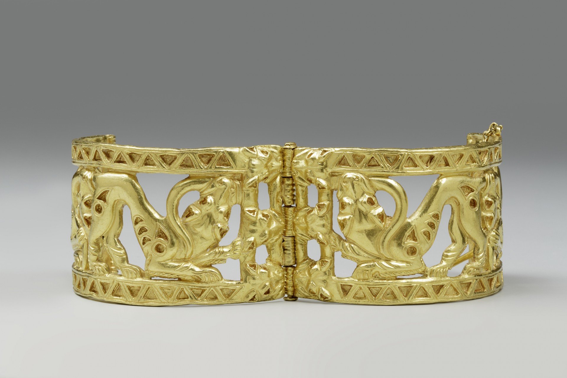 - Gold bracelet, shows two cats, Afghanistan or Tajikistan, 1st century BC 2nd century AD, © Roman-Germanic Museum / Rheinisches Bildarchiv Köln, Photo: Anja Wegner.