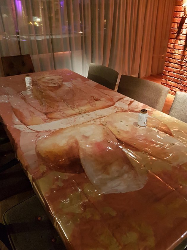 The hotel lounge has 40 tables, 13 of which we used, spread out. The lounge is both a bar, a restaurant and reception desk and during Couturissimo anyone can consume at the tables with art. But still for the locals, a lot of the penta experience is about being seen and and making a scene. Curating a groupshow with only aliases and repeating the Penta sales pitch in our communication turned out practical from a democratic perspective.