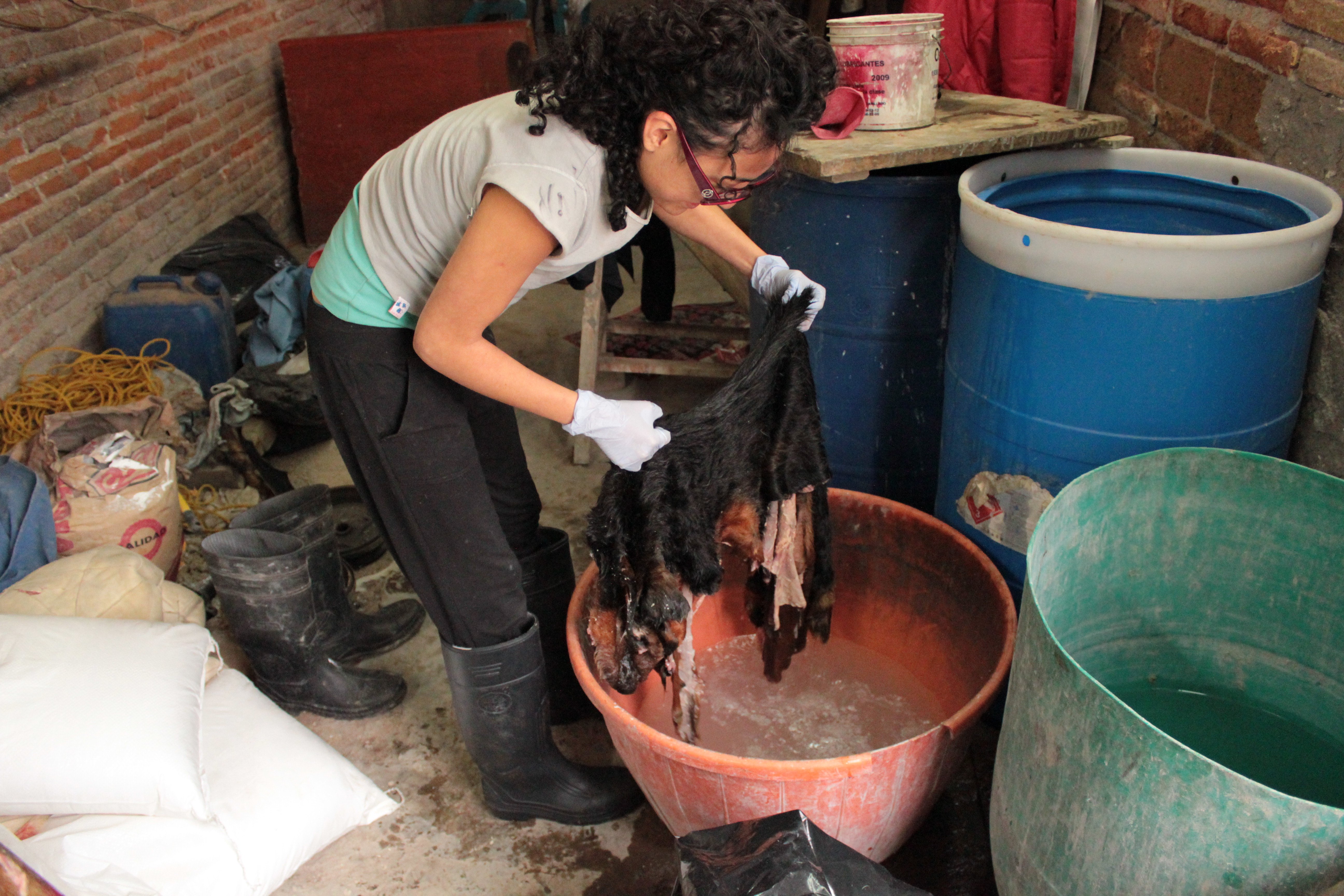 Berenice Olmedo has never been to an art fair, as we said, but she has been painting since she was a young girl, thanks to her parents – her father is a journalist, her mother works for the government – who, as a child, have prompted her to traditional techniques. ‘Thus, the moment I decided I would have studied fine arts at university, I was already painting for eight hours a day’ she tells us. Of the university time at Universidad de las Américas of Puebla she remembers the advantage of the various departments gathered in the same place, so different disciplines could enrich each other. ‘I was studying fine arts, but I also had the opportunity to work in the biology’s lab, for instance, and to carry out researches with professors from subjects other than art’. So the project with stray dogs was born, documented by a video relating how Olmedo, through picking up corpses of dogs that had been run over, highlights the legal status of the dogs deemed as a mere objects by the Mexican Federal Civil Code. From dogs’ dead bodies the artist makes various products, including soap, shoes, a mantle, a jacket, a pair of boots; that is, similar articles to those that the industry silently extracts from farm animals. The video has many cruel passages, nonetheless there is such an innocence in the way the artist picks up the dead bodies from the street, skins the animals, isolates the body fat, or performs the processes of tanning that she manages to raise the discourse to a level that leaves nothing to the initial brutality. Quite the contrary, through the positive frankness of manual work (Olmedo des everything herself under the supervision of an expert), the artist refers to the hypocrisy our society hides behind, simply being content with ‘not seeing’, and perhaps ‘not knowing’. The visual ‘violence’ the viewer is exposed to has a very precise aim, therefore it is largely justified. The process ends up with the artist taking the ‘products’ of her transformation to the public market of Analco, in the city of Puebla, in order to show them, however not like artworks – that is what in the end Wim Delvoye and Damien Hirst did, just to name two artists who have worked with dead animals – but like everyday objects that, in this case, are addressing the illegal traffic of living dogs that is typical if the Analco market.