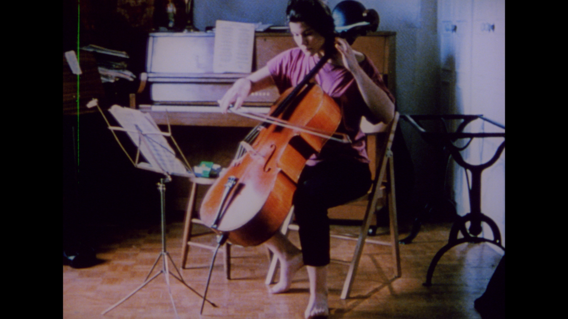 In Là-bas (2006), Akerman films from within a closed apartment in Tel Aviv. The outside world enters only filtered, through shutters. There is no action—only the filmmaker’s voice reflecting on identity, on exile, on her mother, survivor of the Shoah. The film is a room, a border. In that confined and trembling space, Wieder-Atherton’s cello slips in like a line of air. It does not interrupt. It does not soften. It makes the walls begin to tremble, the curtains quiver, the waiting extends. It is a sound that seeks not effect but threshold—that point which separates what may be said from what remains suspended. It does not accompany the voice, but surrounds it. It guards it.