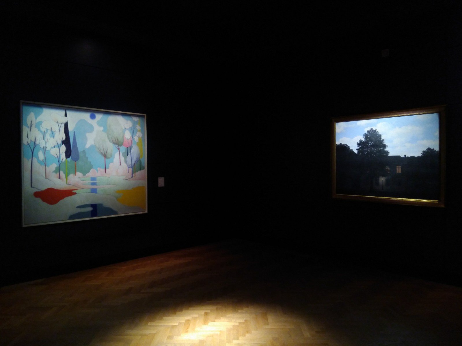 La mostra che li pone a confronto ha inaugurato la scorsa settimana. Nasce dall’idea di riempire lo spazio libero lasciato dalle numerose opere date in prestito dal Museo al SFMOMA di San Francisco in occasione della retrospettiva su Magritte. Posto che Party ha dipinto questa serie di opere espressamente per il Museo Magritte, abbiamo provato a riflettere sul principio di site-specific. La relazione fra i due artisti è infatti cosi forte che a volte si stenta a distinguerli. E la loro è una relazione tanto formale quanto intellettuale.