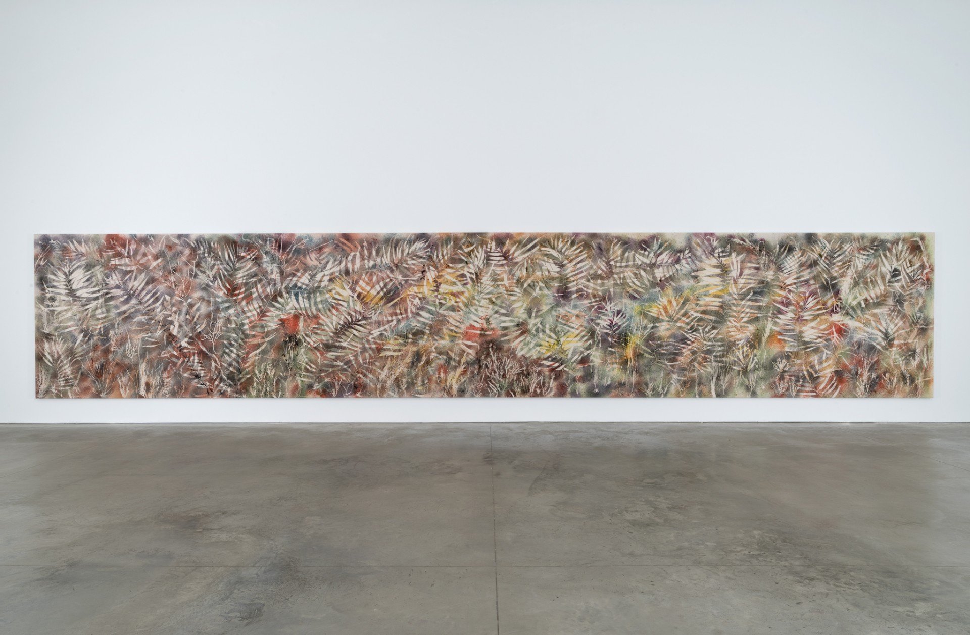 - Sam Falls, Untitled (Conception) 2018. Pigment on canvas, 229.2 x 1250.3cm. All artwork images © Sam Falls, courtesy 303 Gallery, New York.